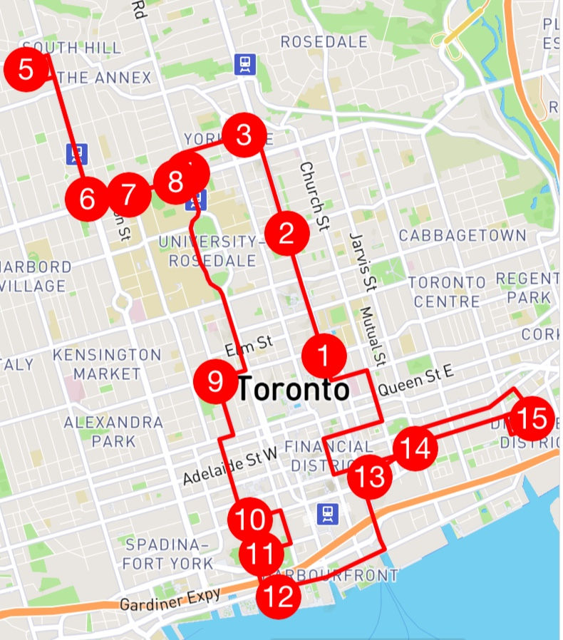 Tour 15 downtown Toronto's main tourist areas.